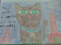 Releitura com os alunos do 3°ano da obra "Gato e pássaro" do artista Paul Klee. Atividade realizada com a prof. Cieliane